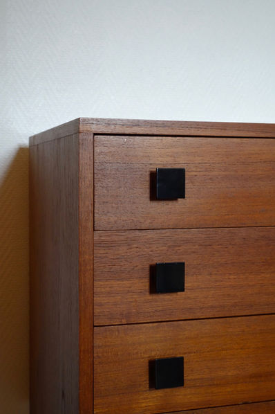 Structure métallique laqué noir recevant un caisson en teck composé de 4 tiroirs